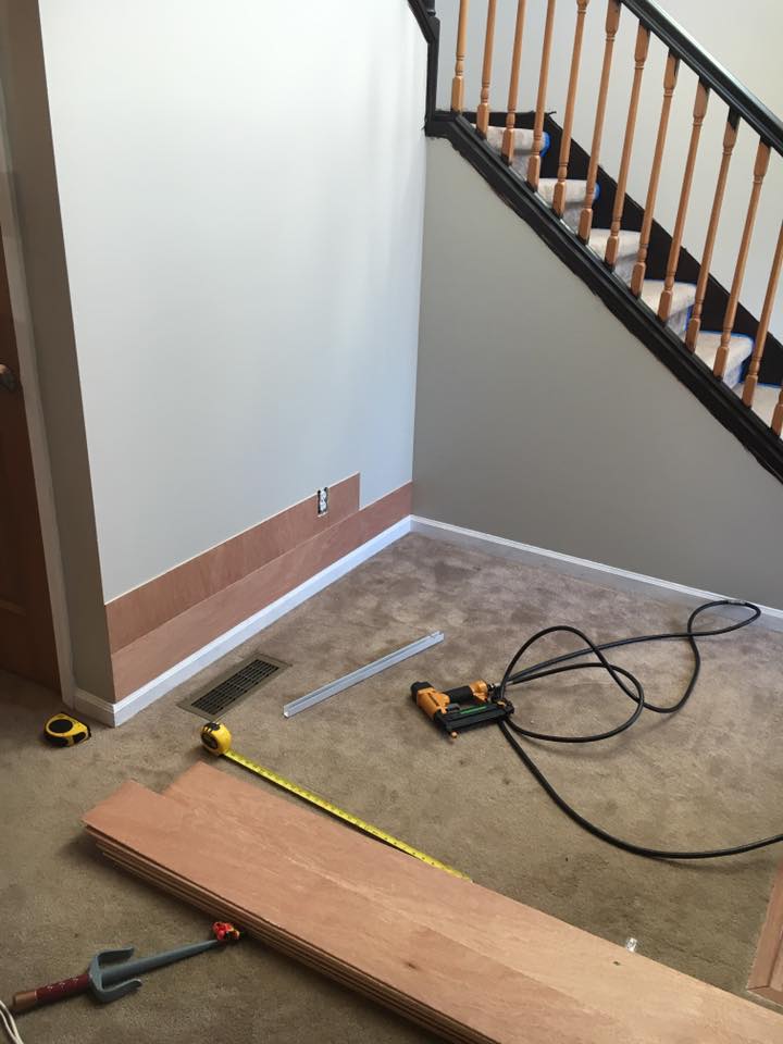 So, off to General Materials I go to purchase some sheets of plywood. Thankfully, they have a super cool cutter machine (um, I am not a technical person) but they were able to rip the boards into 6 inch strips for me. Since we were doing the stairs and there were lots of weird and odd angles, I had them ripped in 6 inch strips in both directions.
